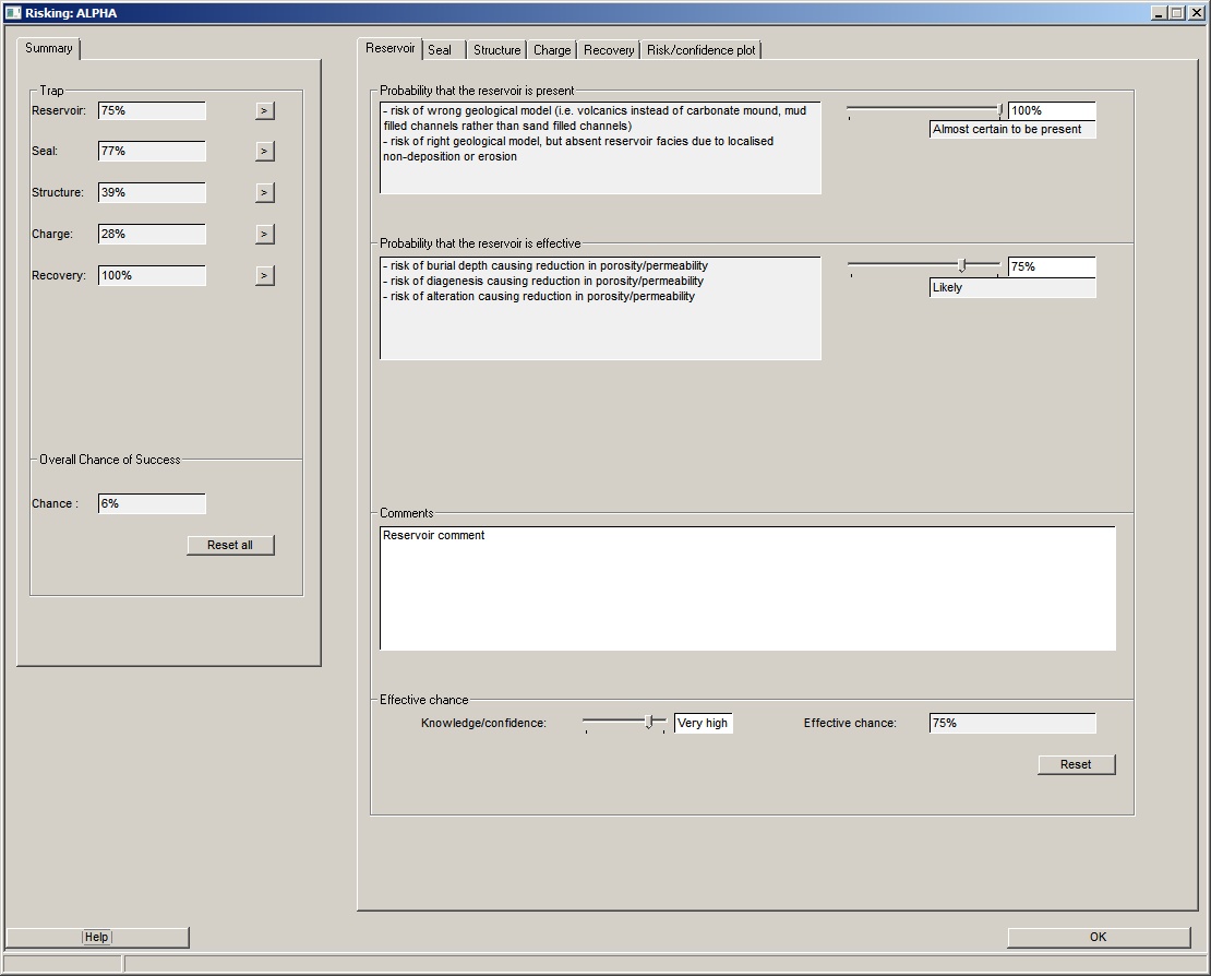 Prospect Chance is divided into five categories: reservoir, seal, structure, charge and recovery