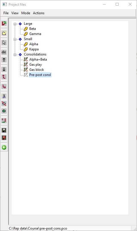 button or choose Manage from the file menu. A new window is shown with the names of all the prospects and consolidation in the project.
